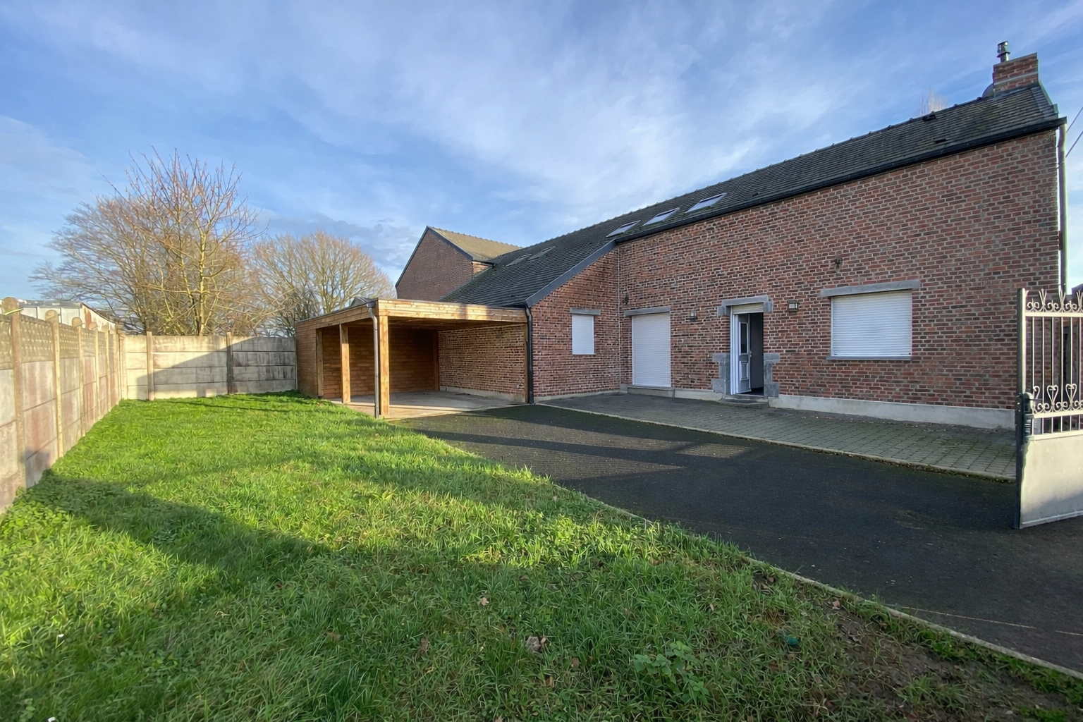 Maison individuelle comprenant : une cuisine (four, plaques, hotte en mis à disposition), un couloir avec placard de rangement, une pièce de vie,...