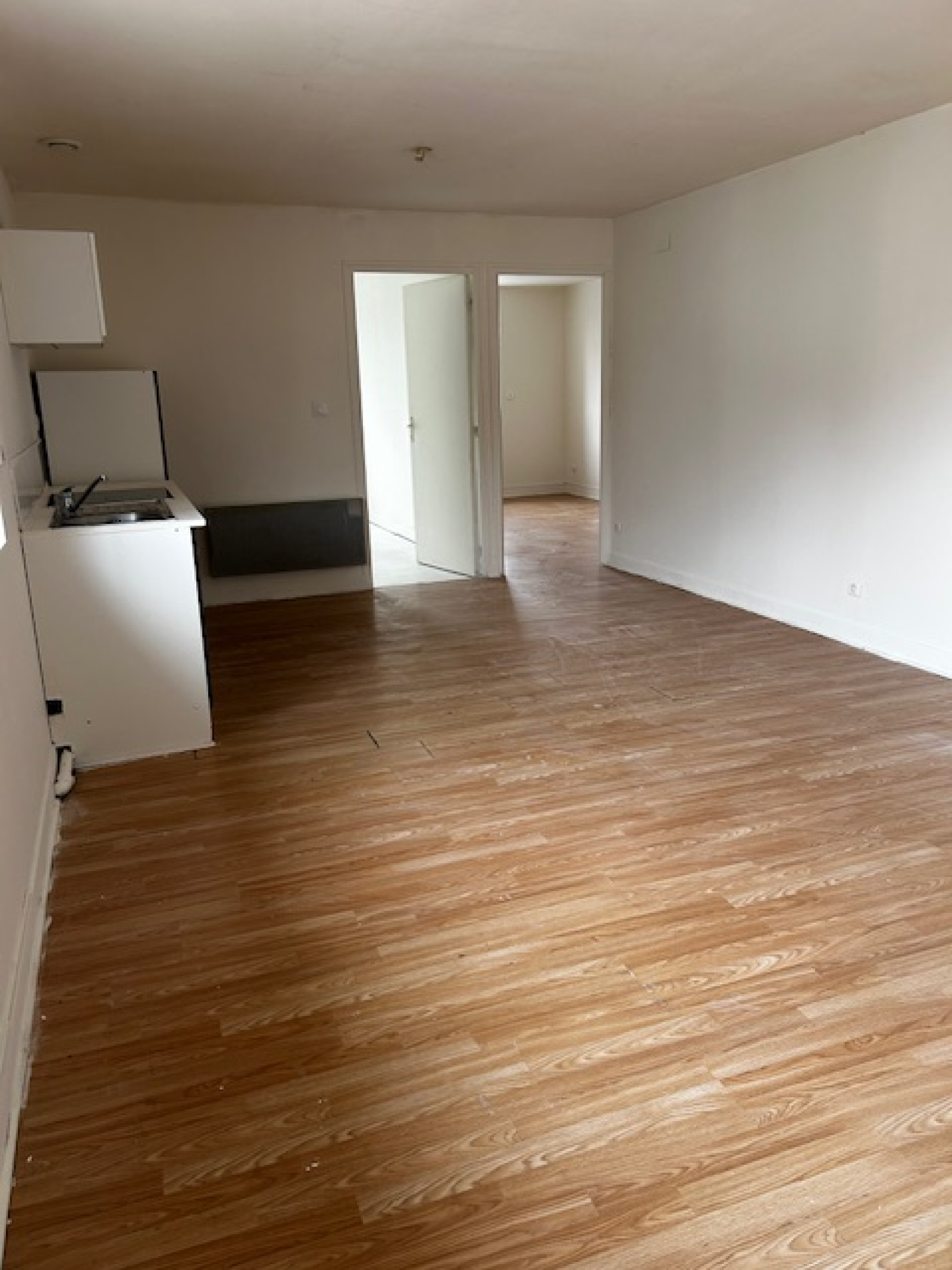Nous vous proposons au centre ville proche des commerces et des grands axes autoroutiers cet appartement de 62m² situé au 1er étage comprenant une grande pièce à vivre avec cuisine, 2 chambres, salle de bains avec wc.