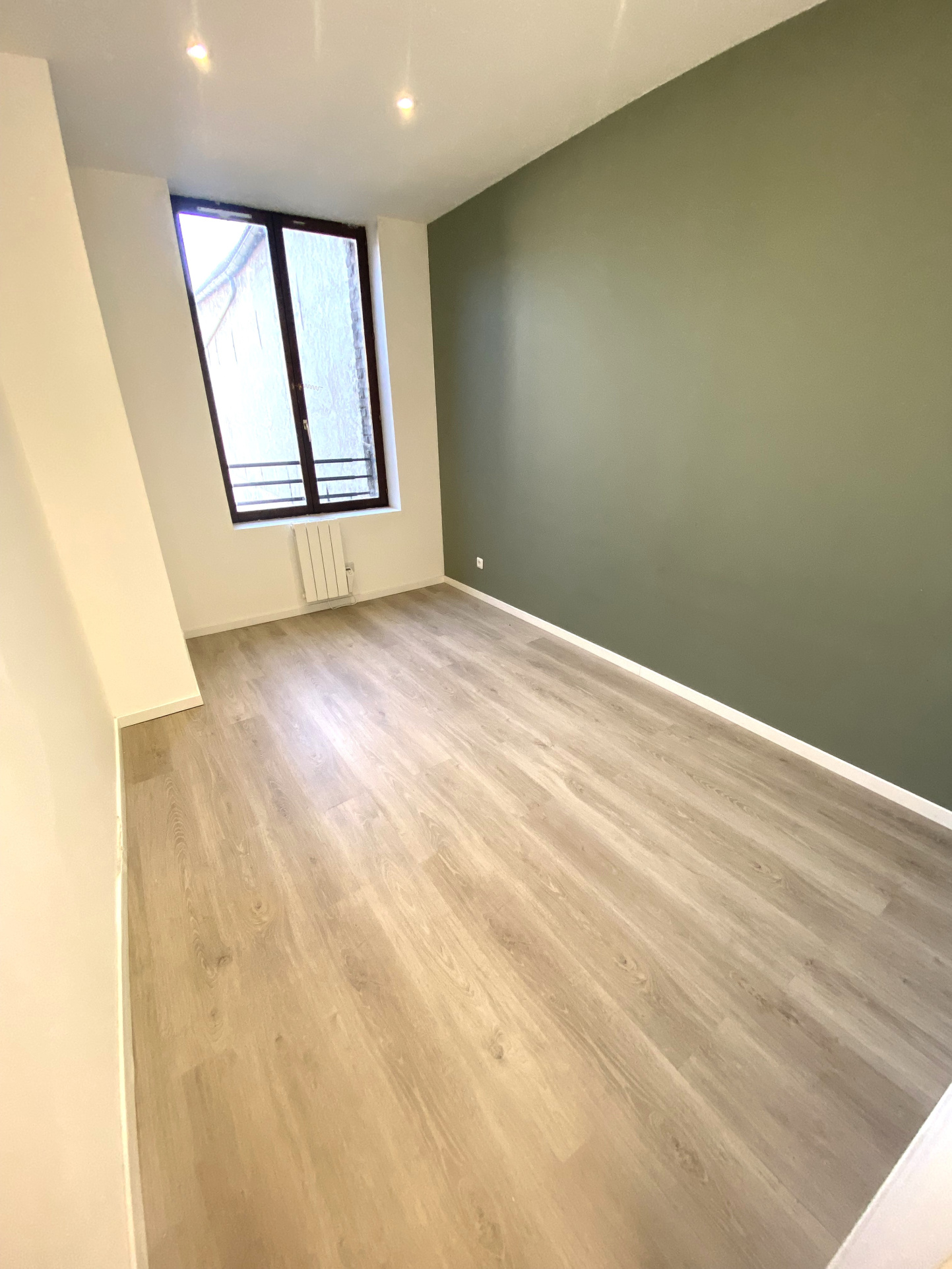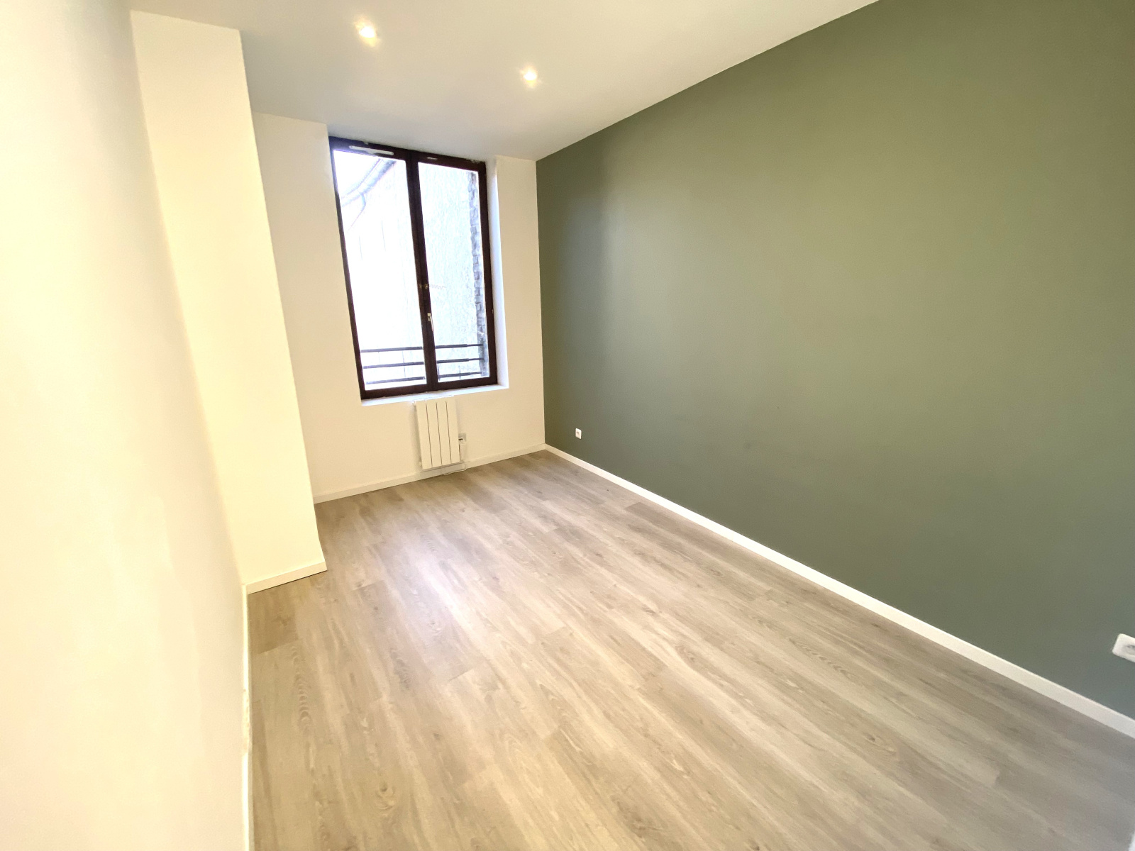 Cet appartement T2 situé au 1er étage, sur la place Rombault, se compose :