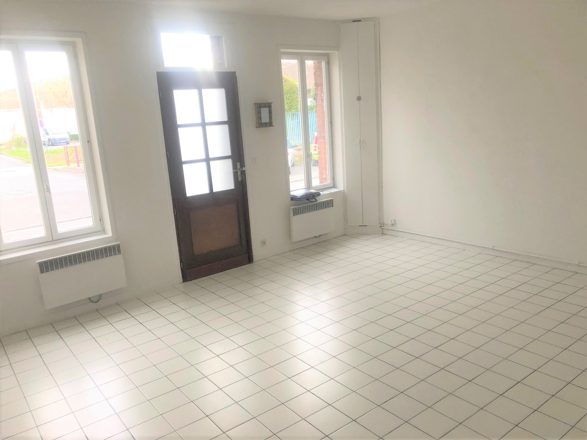 Maison mitoyenne comprenant : un séjour, une cuisine séparée avec meubles de rangement plaques, four), cellier, WC.