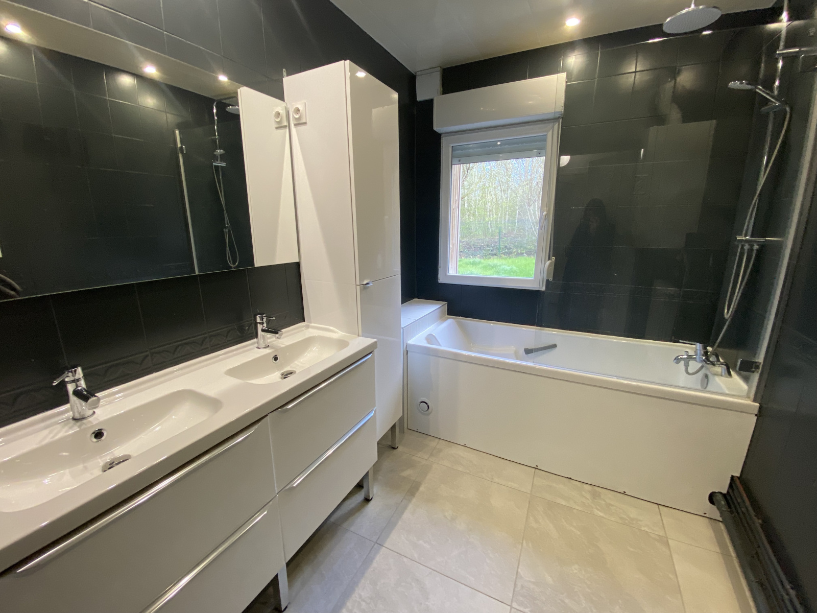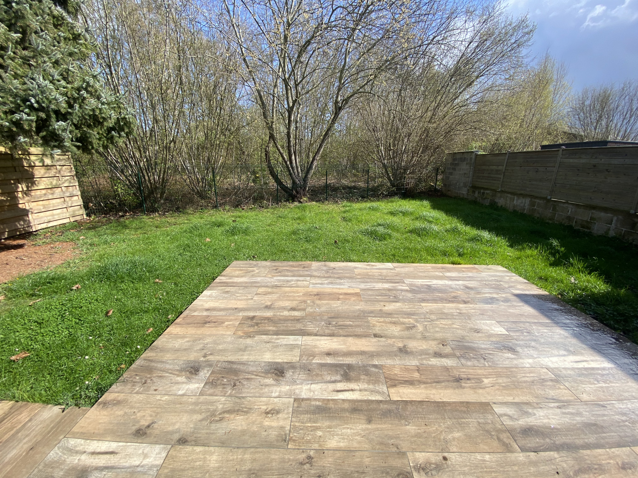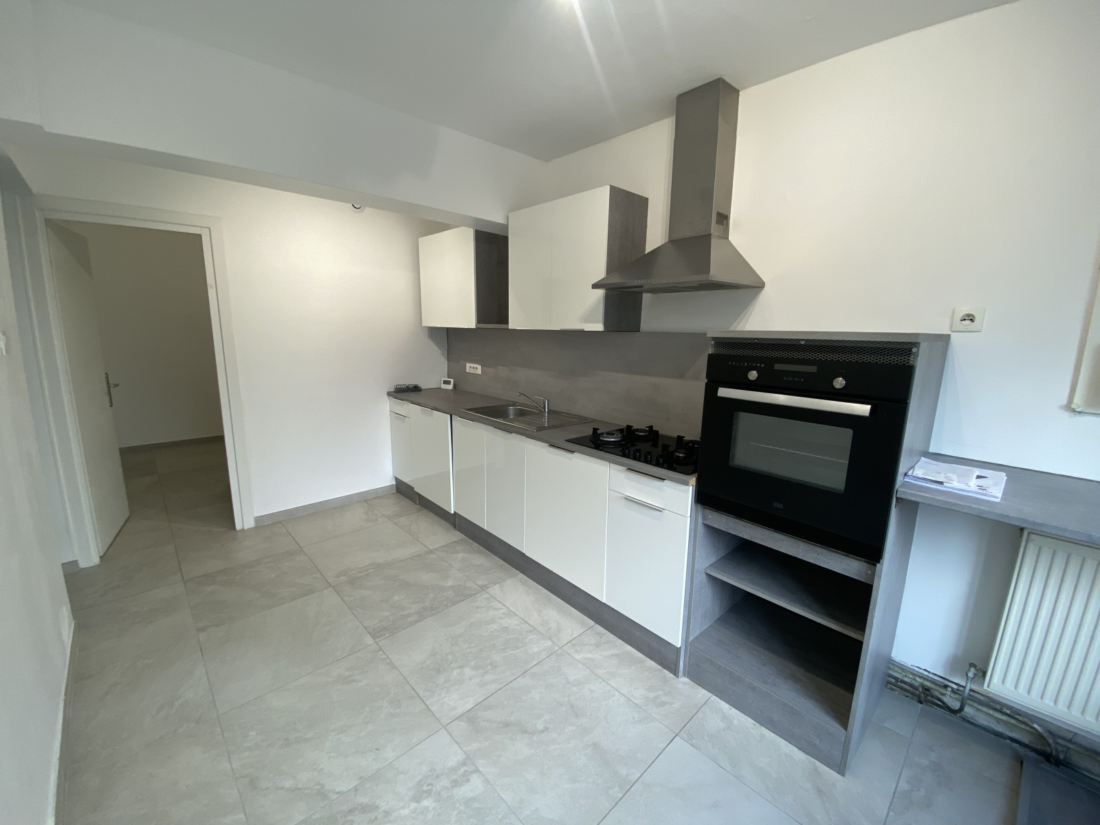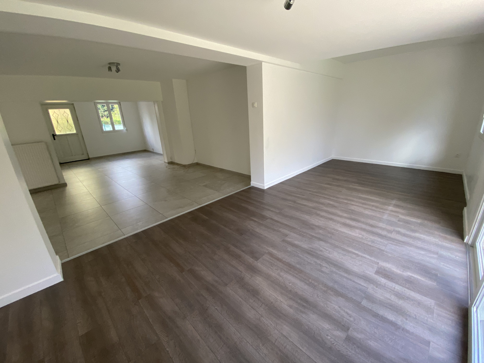 Maison mitoyenne à Marly comprenant : Un séjour en 3 parties, une cuisine aménagée et équipée (four, plaques, hotte, lave-vaisselles), une buanderie,