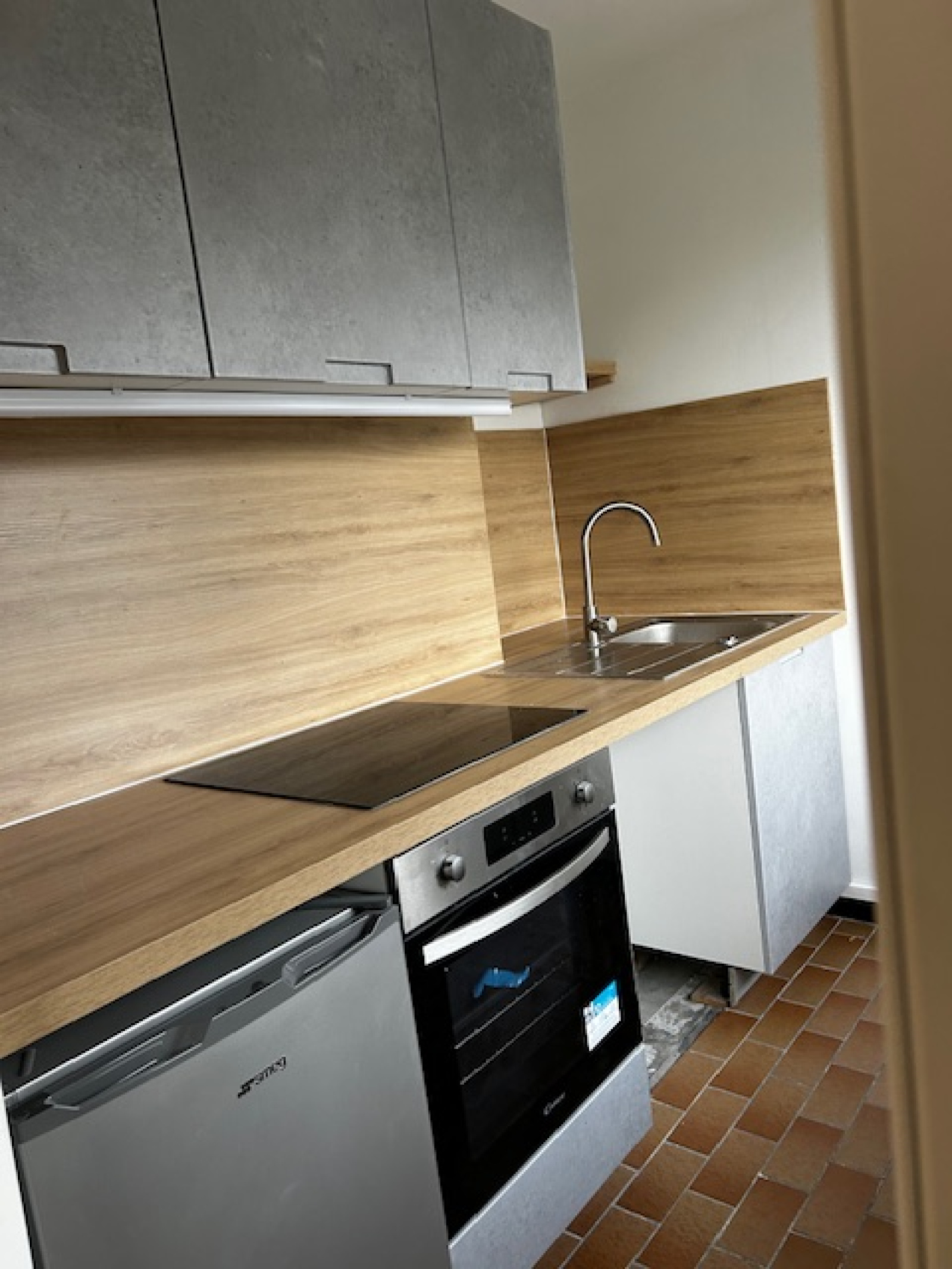 Nous vous proposons à la location cet appartement de type 1 comprenant un coin cuisine équipée avec plaque, four, emplacement lave-vaisselle, évier, un hall d'entrée avec placard, une grande pièce, une salle de douche et wc séparé.