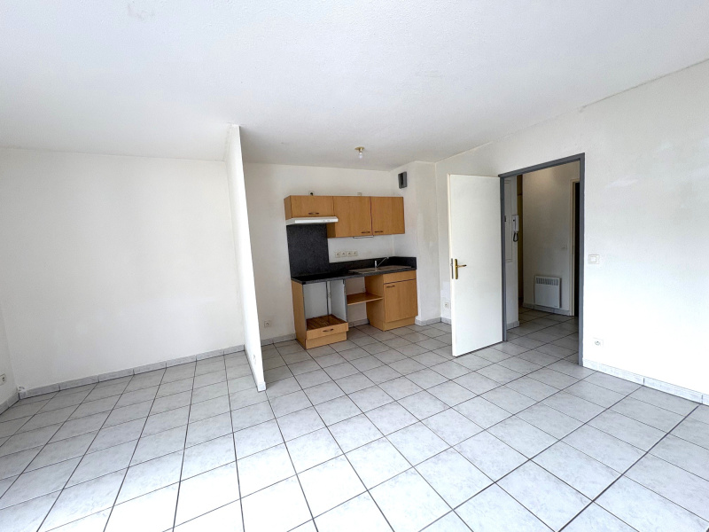 Hall d'entrée, séjour, cuisine (plaques, four, hotte, réfrigérateur), salle de bains, WC, 1 chambre.