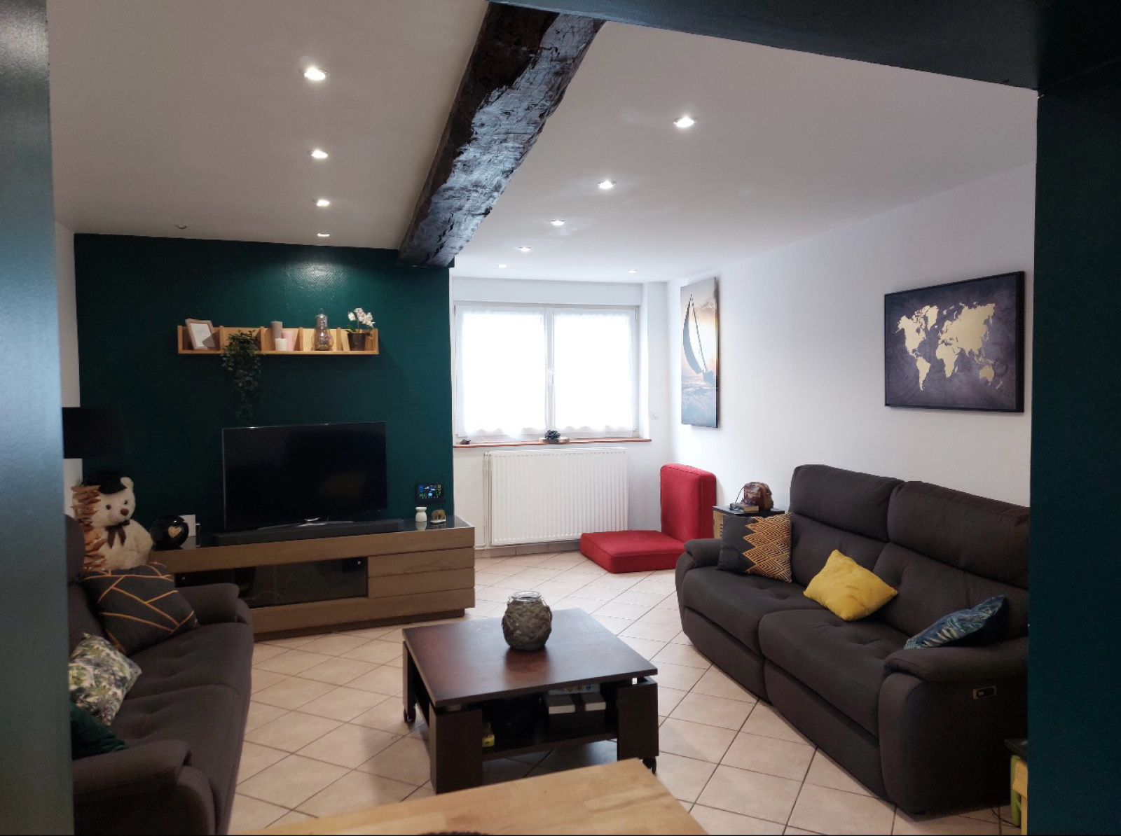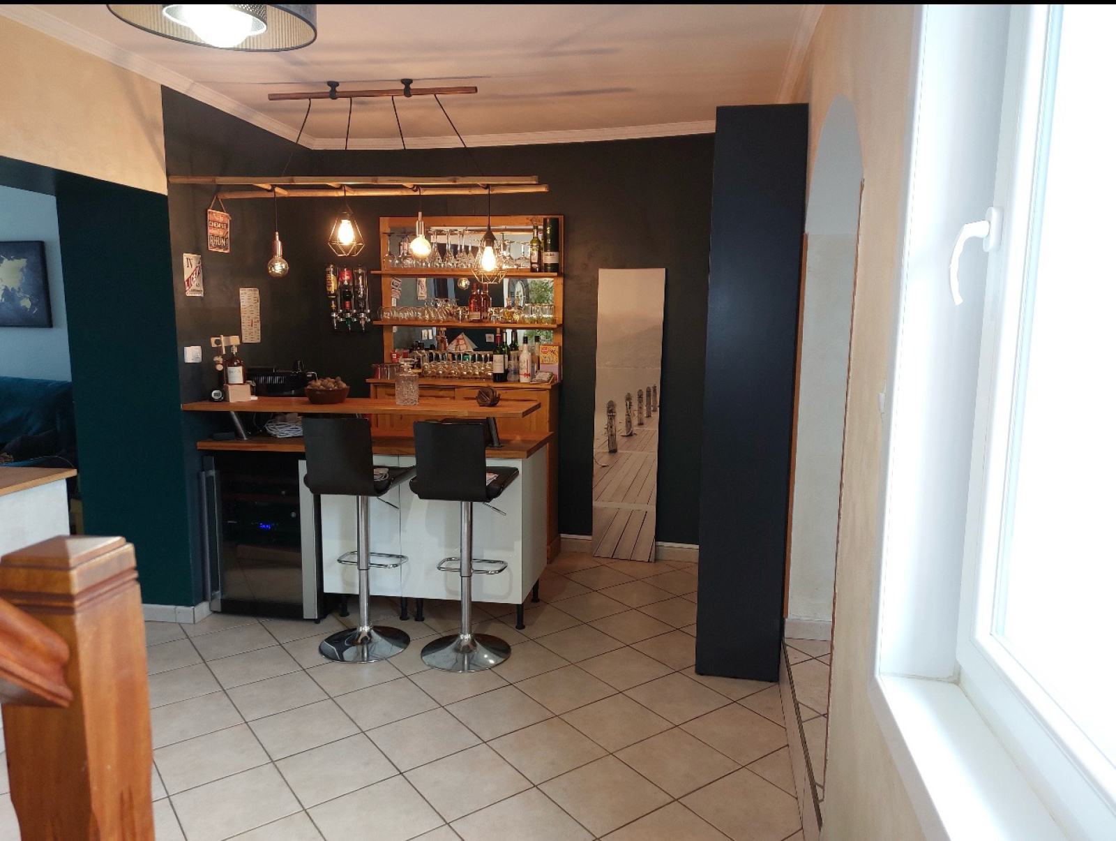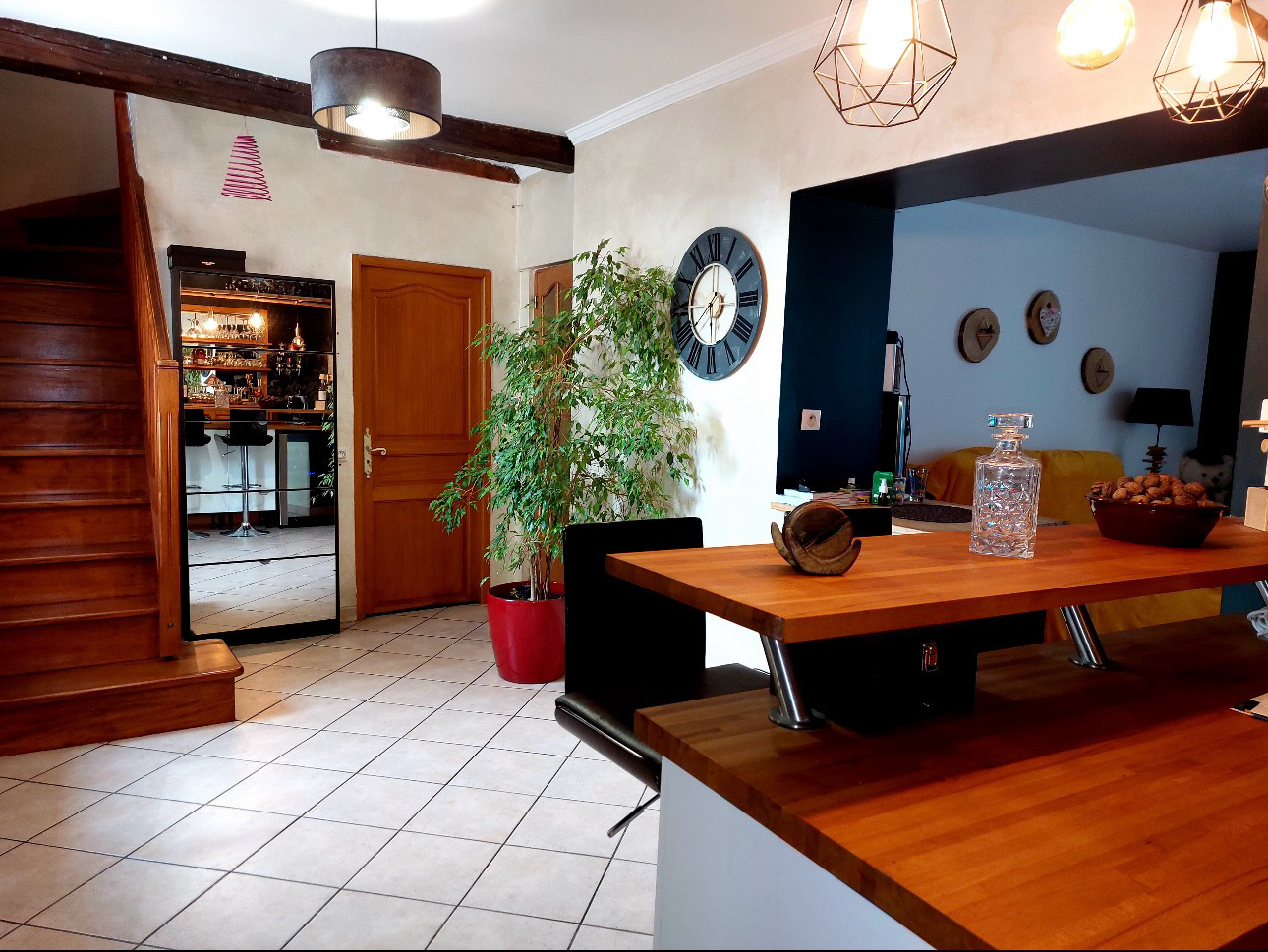 Elle se compose au rez-de-chaussée d’un vaste séjour lumineux avec espace bar, d’une cuisine équipée donnant sur la terrasse, d’une salle à manger, d’un coin laverie, d’une pièce pouvant servir de salle de jeux ou permettant d’agrandir la salle à manger, ainsi que de toilettes indépendantes.