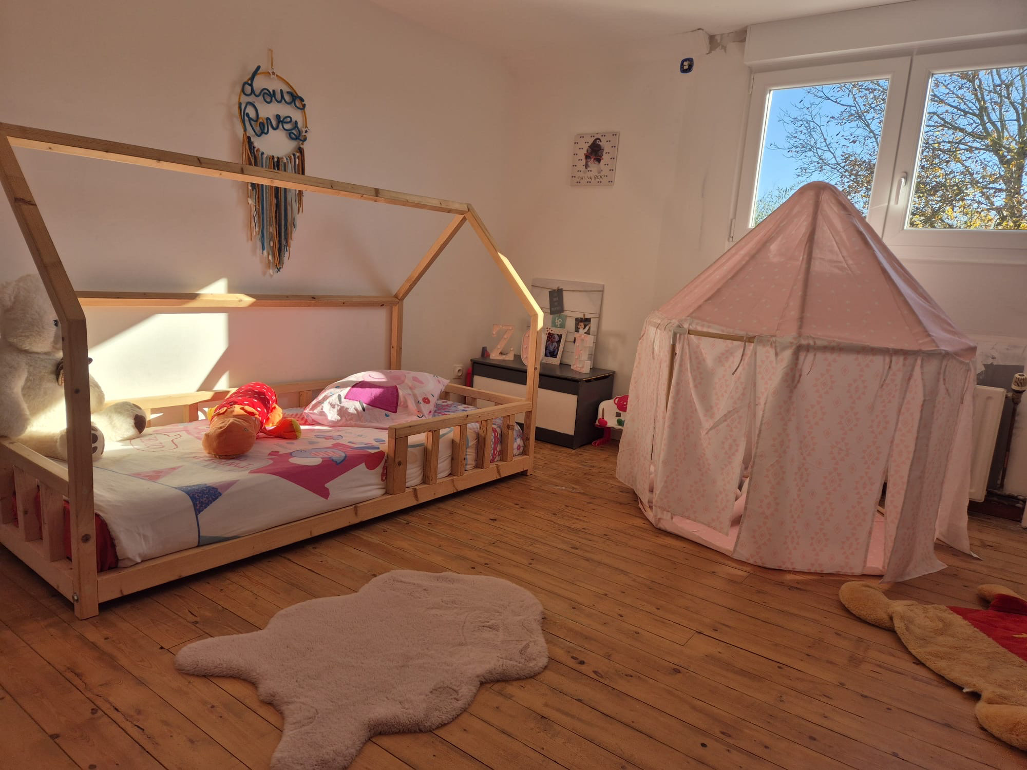 Elle se compose au rez-de-chaussée d’un hall d'entrée avec grand séjour lumineux de 34 m², d’une cuisine équipée ouverte sur une salle de jeux pouvant facilement devenir un coin repas familial.