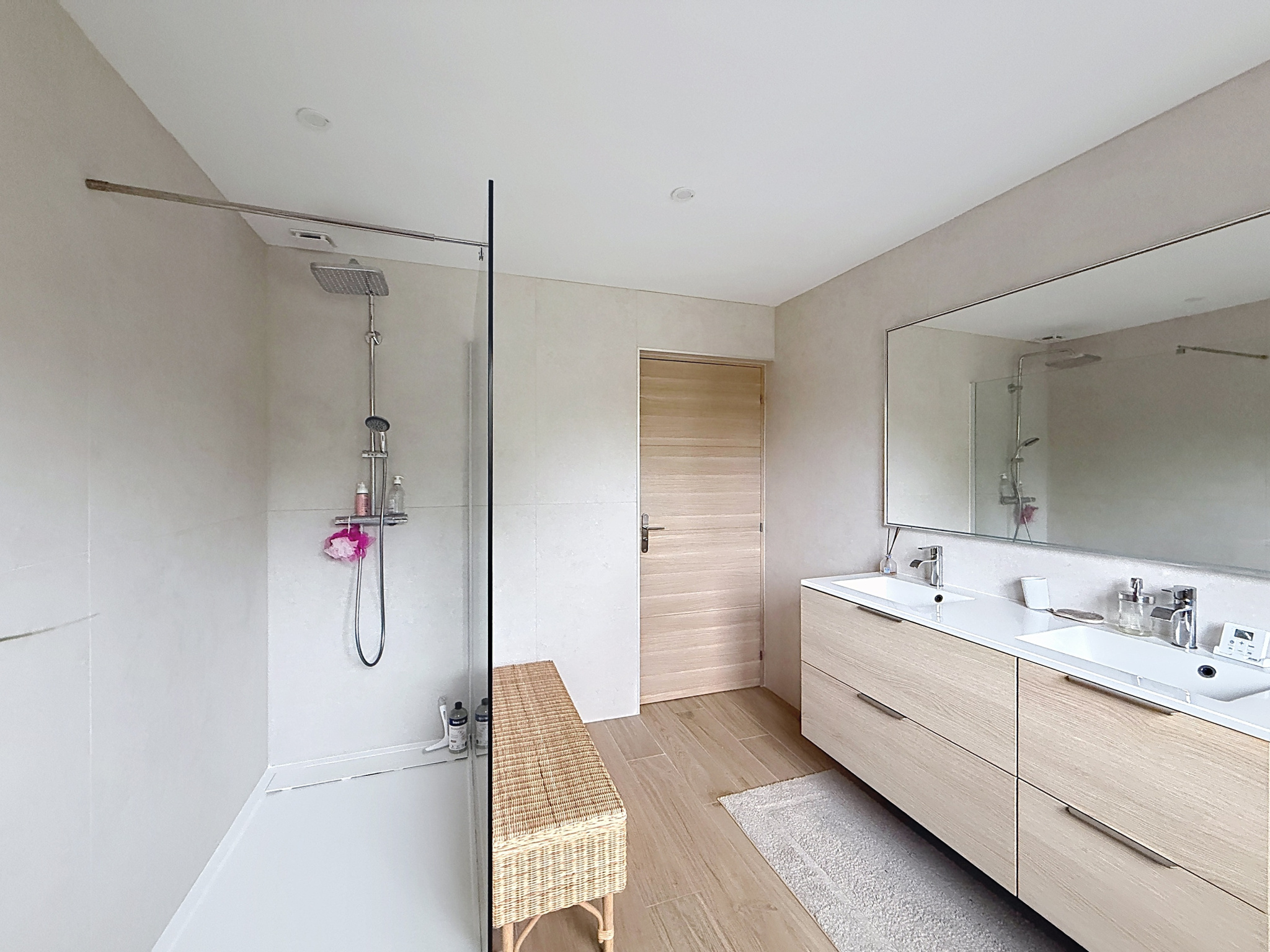 Côté stationnement, vous bénéficiez d’un double garage avec mezzanine, ainsi que d’une allée et d’un parking bitumés, entièrement clôturés.