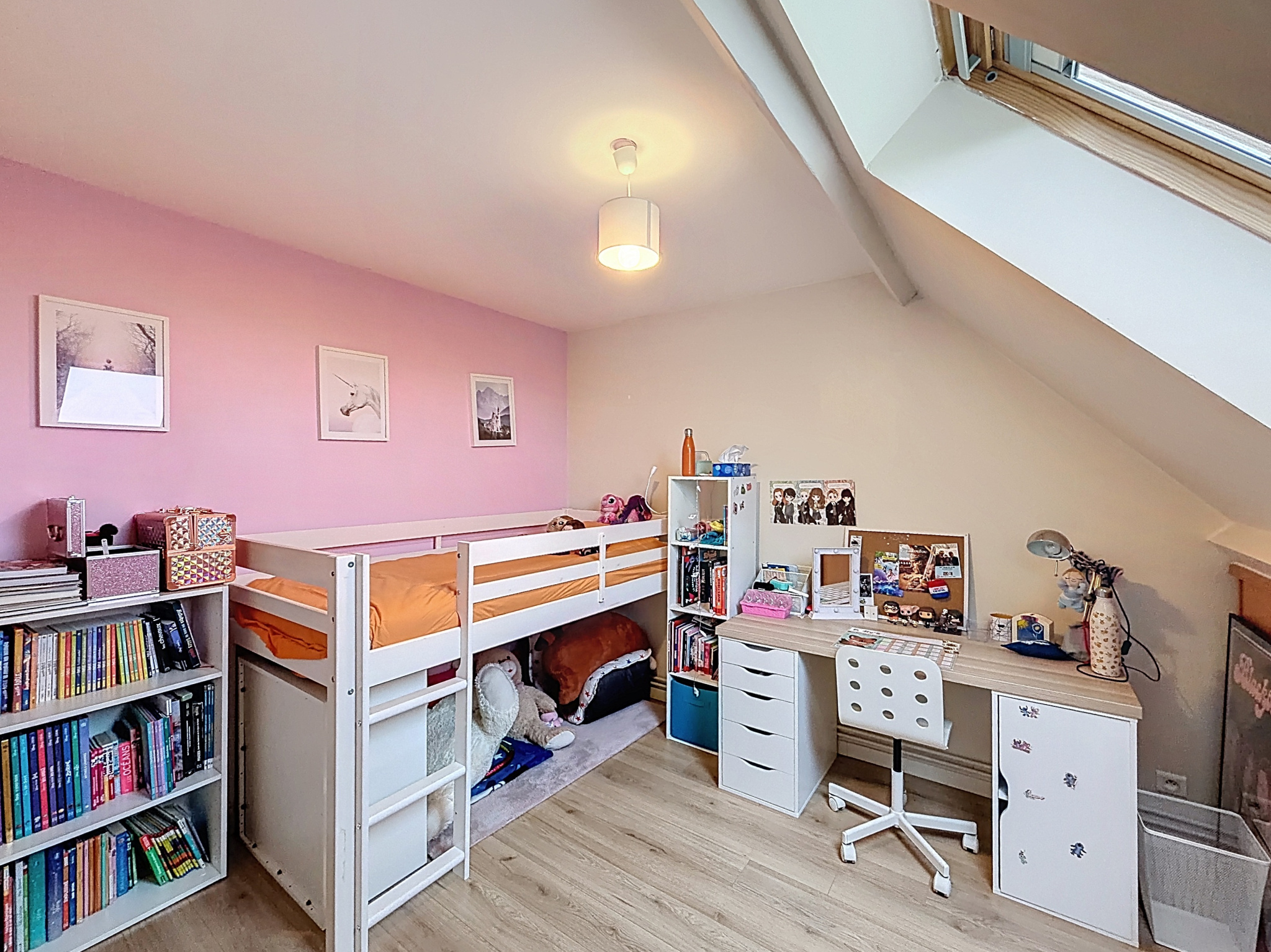 À l’étage, le pavillon dispose de 3 chambres, d’une mezzanine pouvant être aménagée en 4ème chambre, ainsi que d’un espace bureau.