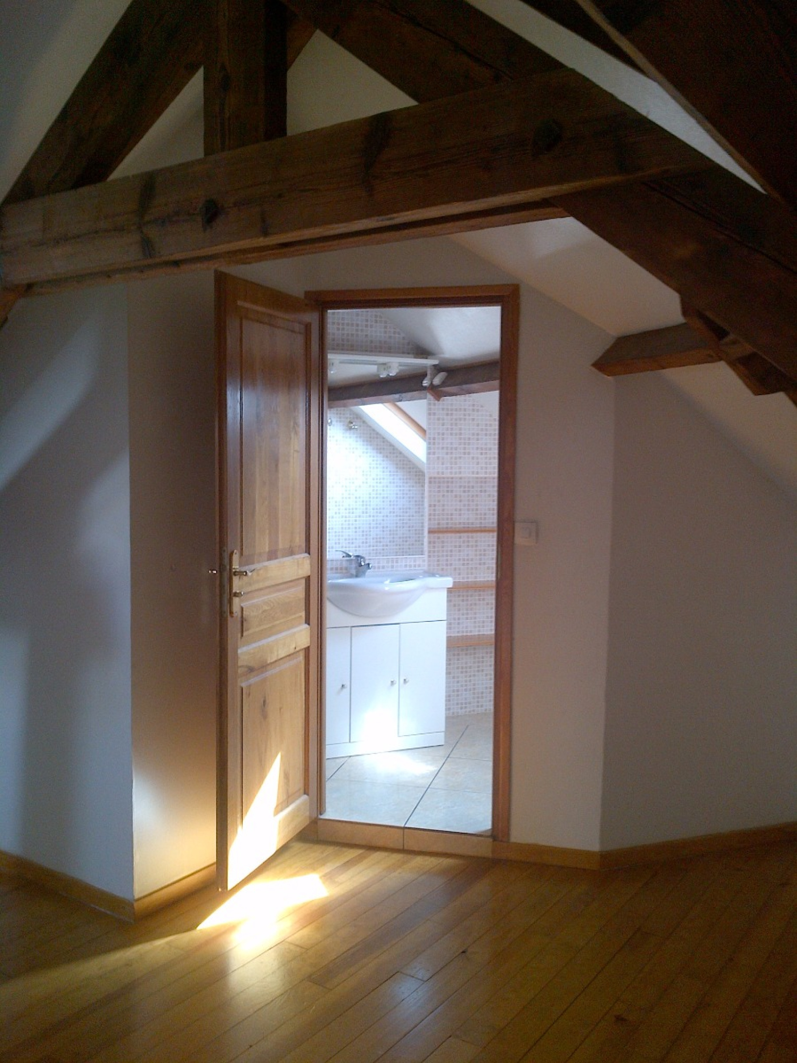 Au premier étage un T2 en duplex de 37m² comprend une entrée sur séjour, un coin cuisine équipée, une chambre et salle de bains loué pour 467€ et 33€ de charges.