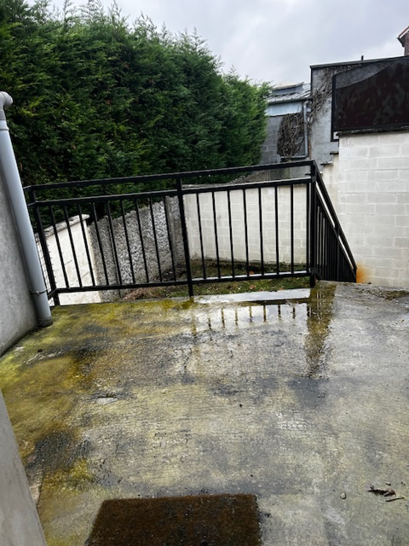 Au rez de chaussée le T3 de 60m² comprend un ensemble séjour cuisine équipée, 2 chambres, salle de douches avec wc, cave, jardin, dépendances, terrasse, loué pour 642€ et 25€ de charges.