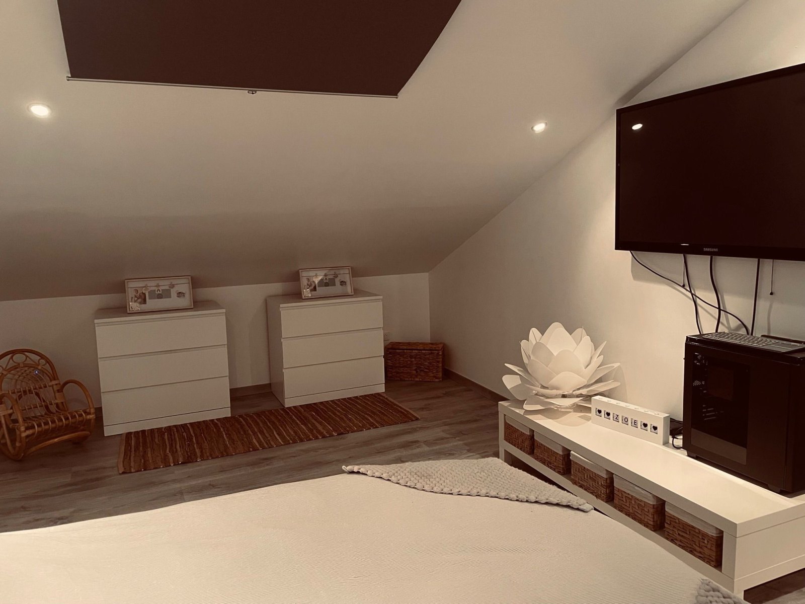 Etage 2 chambres avec espace jeux et dressing, 1 wc et lave mains.