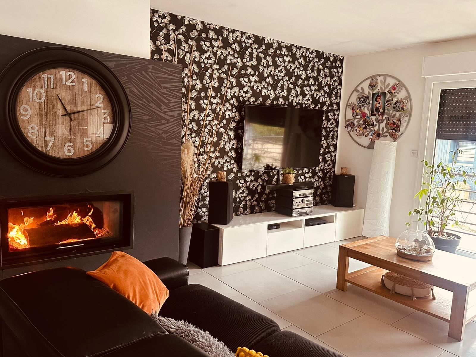 En arrivant dans l'entrée vous pourrez accéder au vaste Salon Séjour lumineux avec sa cheminée à bois pour vos soirées en famille ou entre amis.