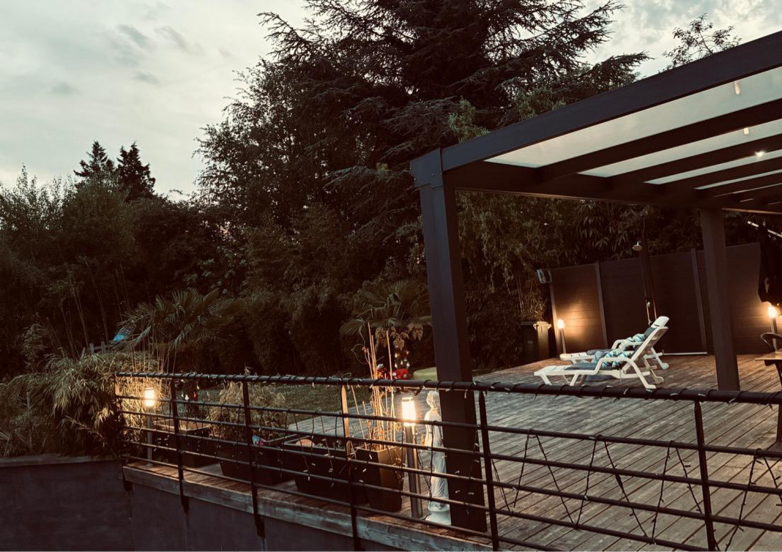 // La Terrasse avec Pergola vous réserve de Supers Moments de Détente en Eté, face a votre Jardin Arboré de 600M2.