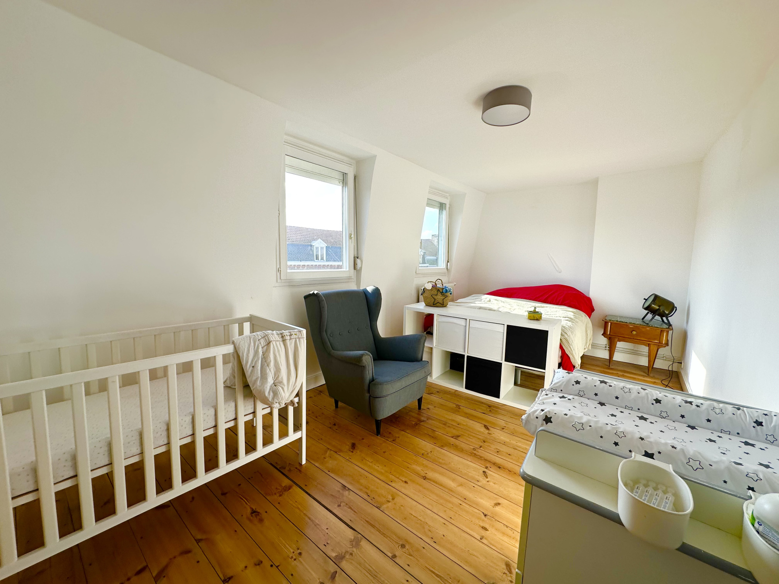 À l’étage, vous trouverez trois chambres, une salle de bain avec WC, ainsi qu’une suite parentale disposant de sa propre salle de bain et WC. Un grenier complète cet espace.