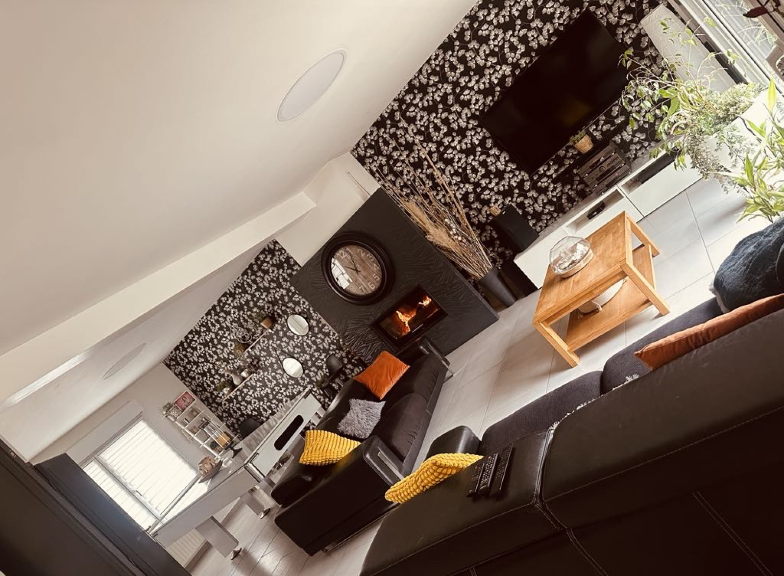 Au RDC : Hall avec Vestiaire , Salon séjour traversant ouvert sur une cuisine Chaleureuse et Spacieuse toute Equipée et moderne.